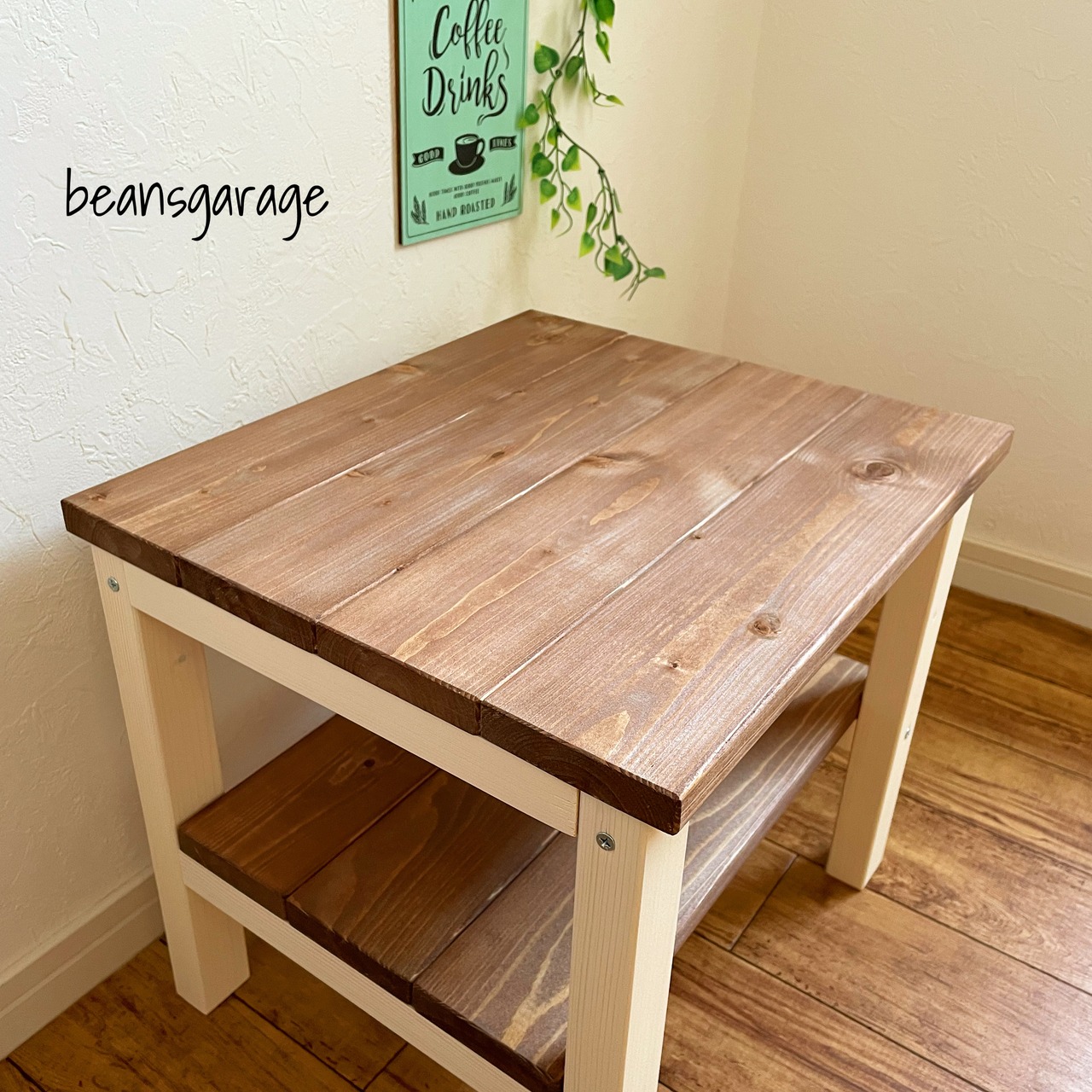 天板・脚共に木製のハンドメイド、カフェ風ローテーブルになります。